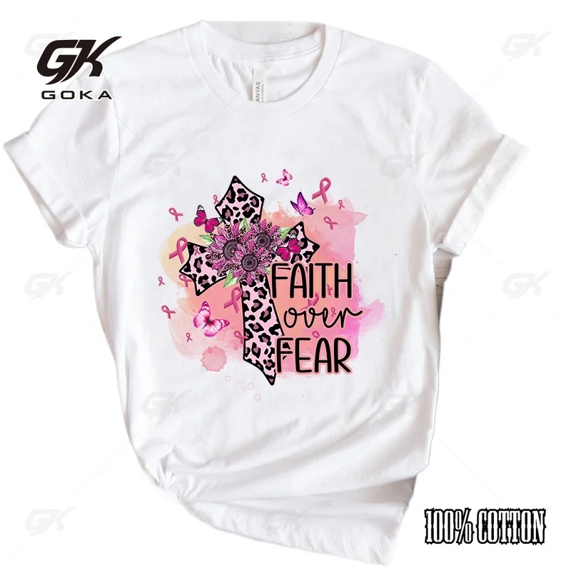 the CROSS - Breast Cancer Awareness Faith Over Fear Print T-Shirt