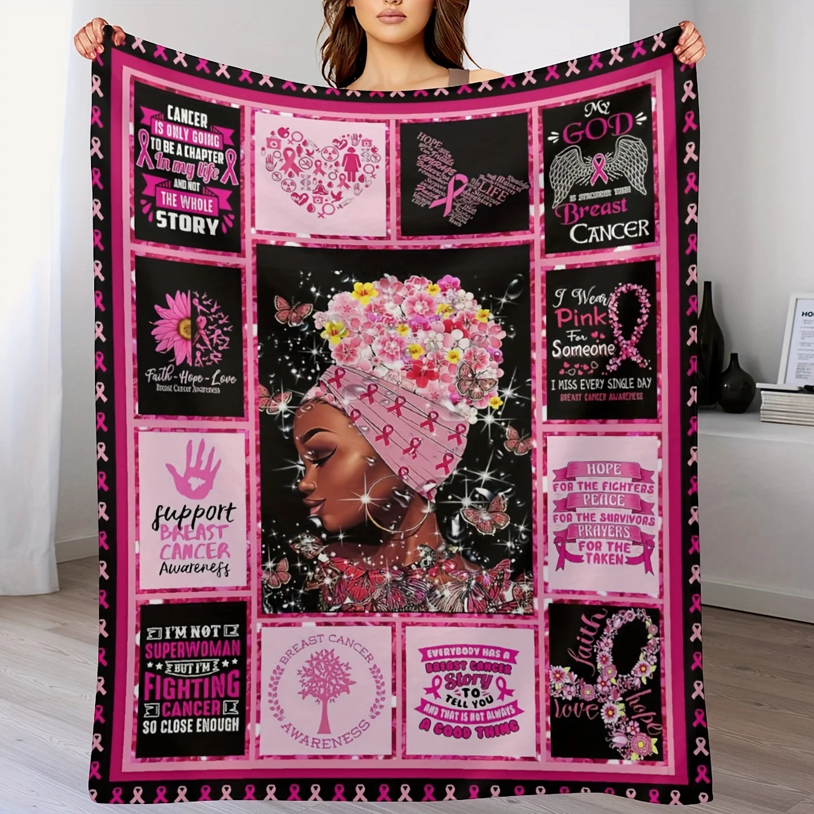 the WARRIOR WOMAN - Breast Cancer Awareness Throw Blanket, Ultra Soft Cozy Flannel Blanket for Bed, Sofa Living Room Perfect Gift for Women