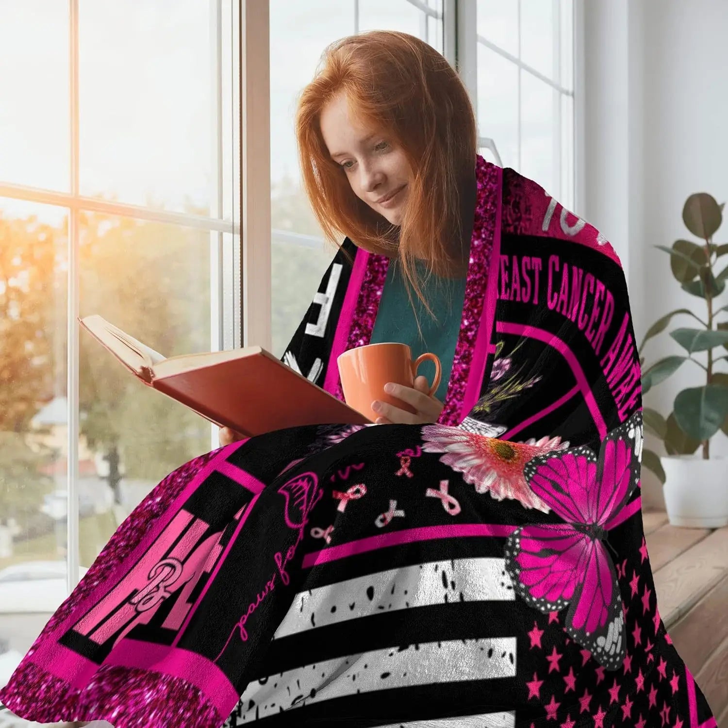 the SNUGGLER - Breast Cancer Blanket, Cancer Survivors for Women Breast Cancer, Pink Healing Blanket for Women Get Well Soon