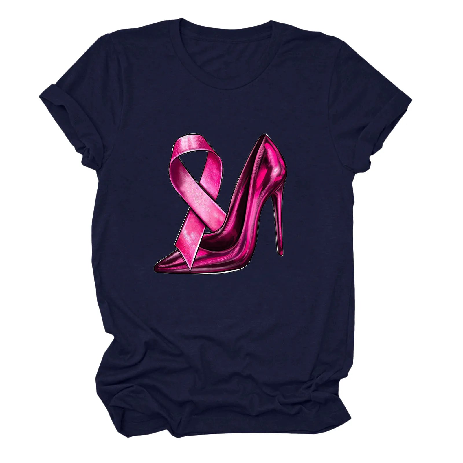 the STILETTO - Breast Cancer Graphic T-Shirts for Women Breast Cancer Awareness Tees
