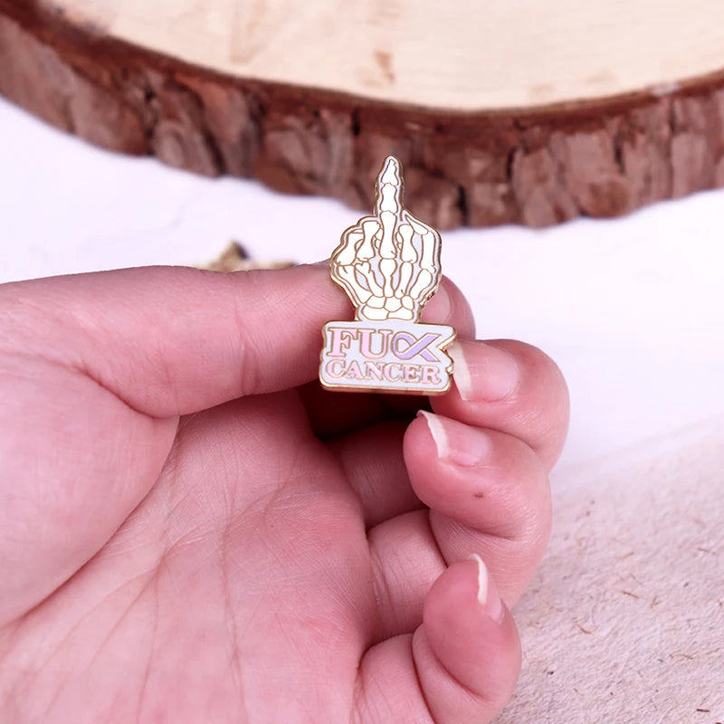 Cancer Awareness Ribbon Badge Mental Health Enamel Pin Skull Hand Brooch Fashion Creative Jewelry Accessory
