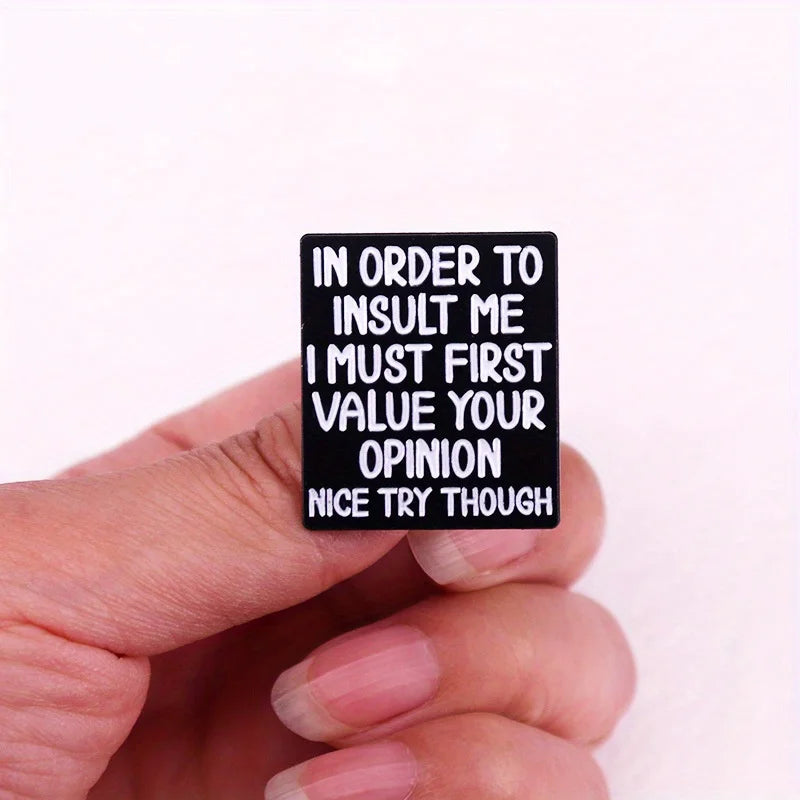 the OPINION - "In Order to Insult Me I Must First Value Your Opinion Nice Try Though" Fun Humorous Quotes Brooch Pin Badge Gifts