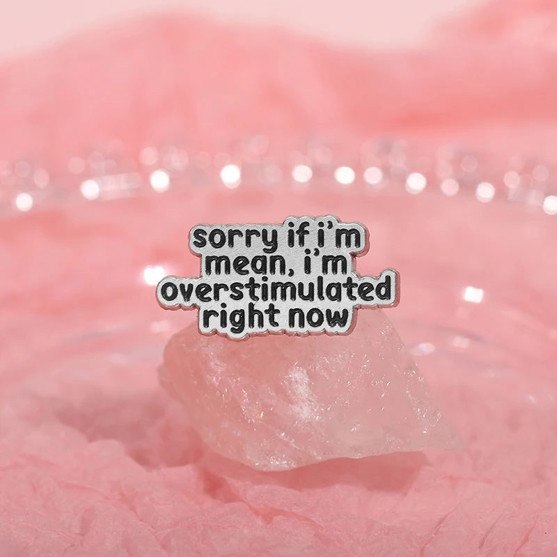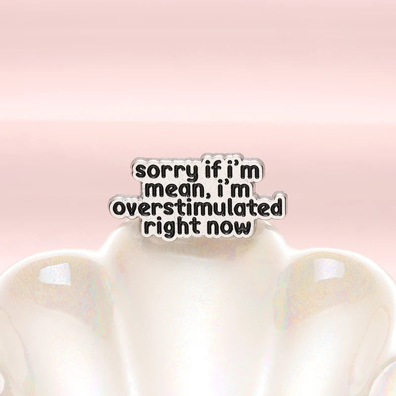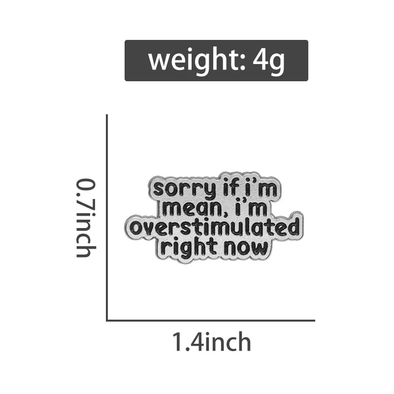 the OVERSTIMULATED - Mental Health ADHD Enamel Pin, Sorry If I'm Mean I'm Overstimulated Right Now Metal Brooch Lapel Badge Jewelry Gift