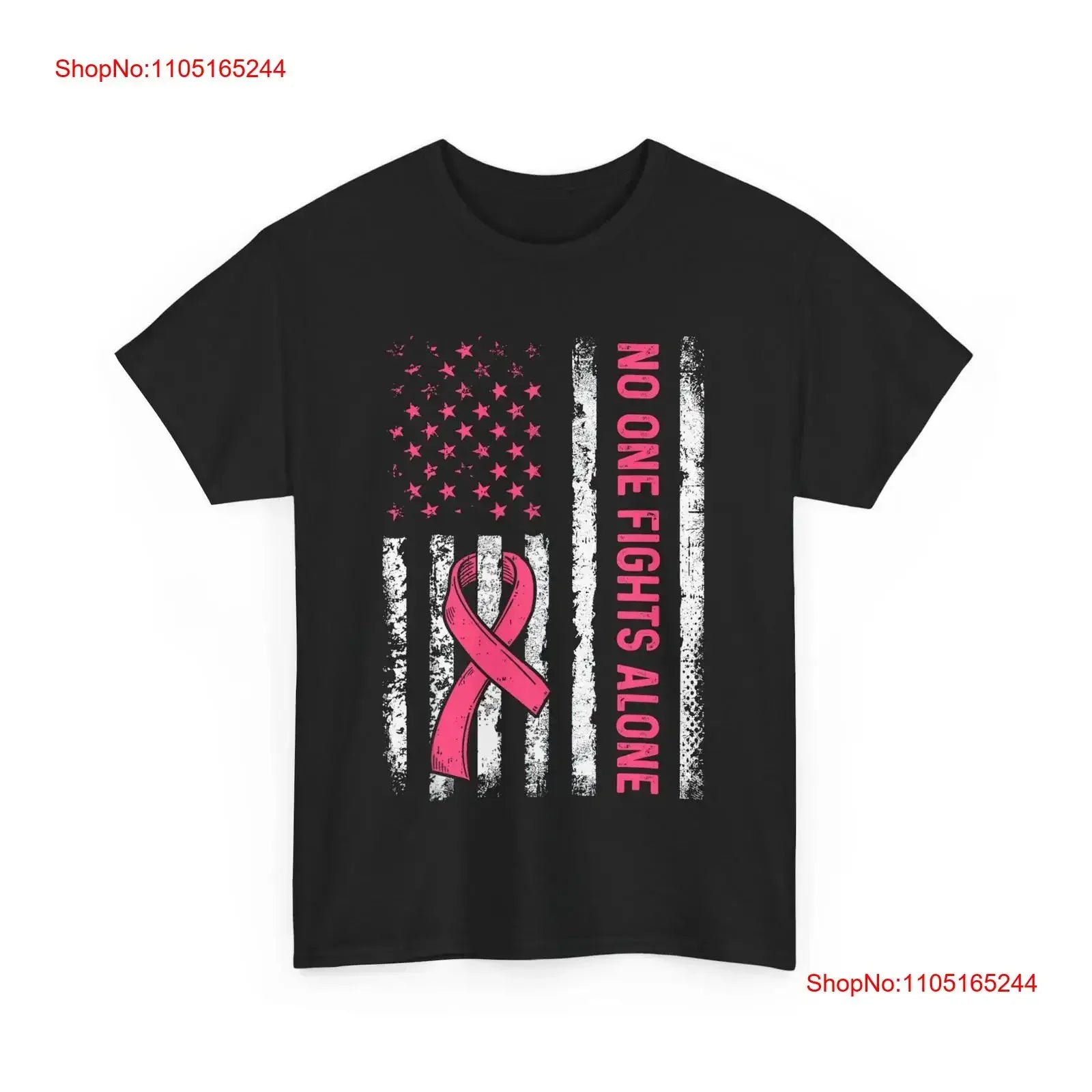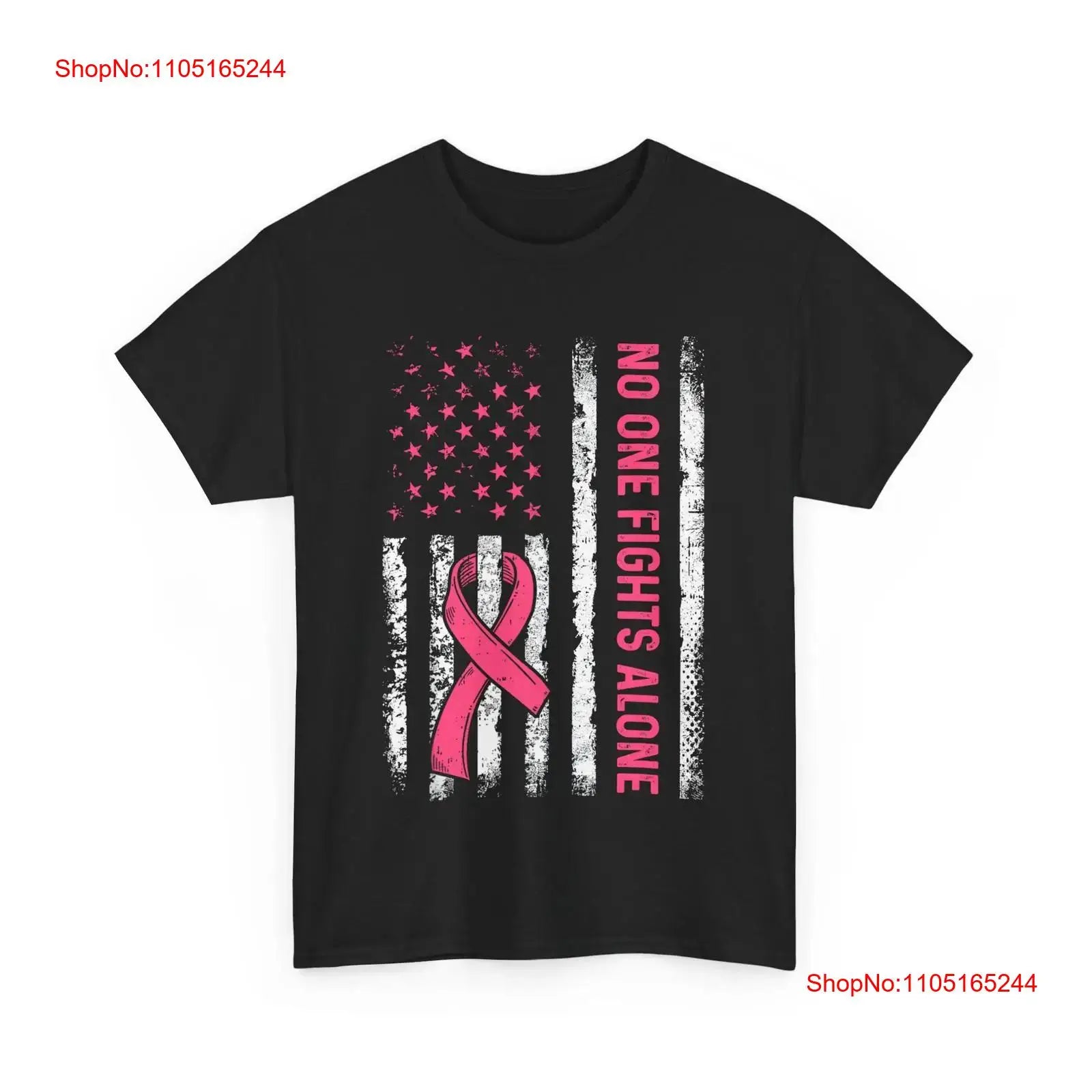 No One Fights Breast Cancer Alone American Flag Pink Ribbon T Shirt vintage Washed fashion designer clothes Breathable Unisex