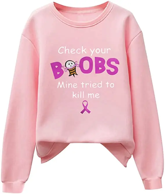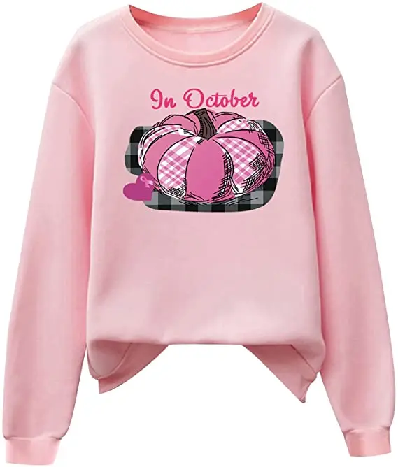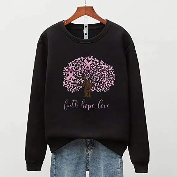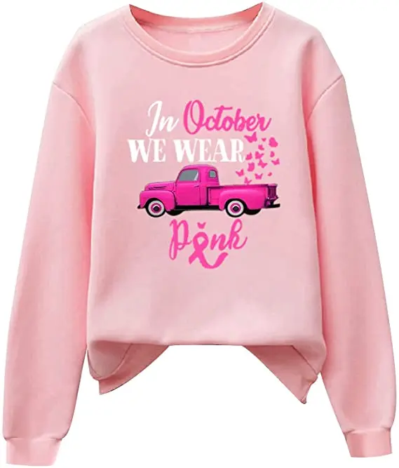 Pink Ribbon Breast Cancer Awareness Long Sleeve Breast Cancer Awareness Shirts for Women Wear Month T-Shirt In October
